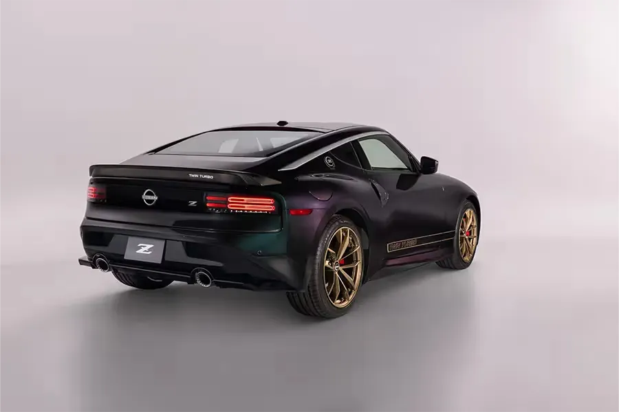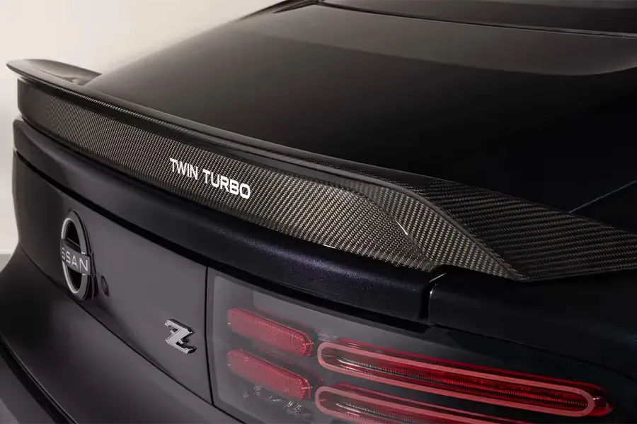 Heritage Edition: A retro‑styled special based on the Performance grade, with Midnight Purple paint, bronze 19" RAYS® forged wheels, carbon‑fiber rear spoiler, red calipers, and “Twin Turbo” graphics that nod to the 1990s Z32.³ ⁶